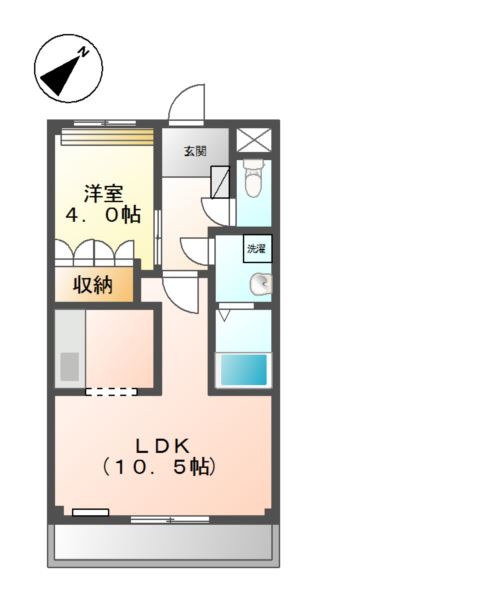 洋室 4.0帖 1室/LDK 10.5帖 1室 - 向き